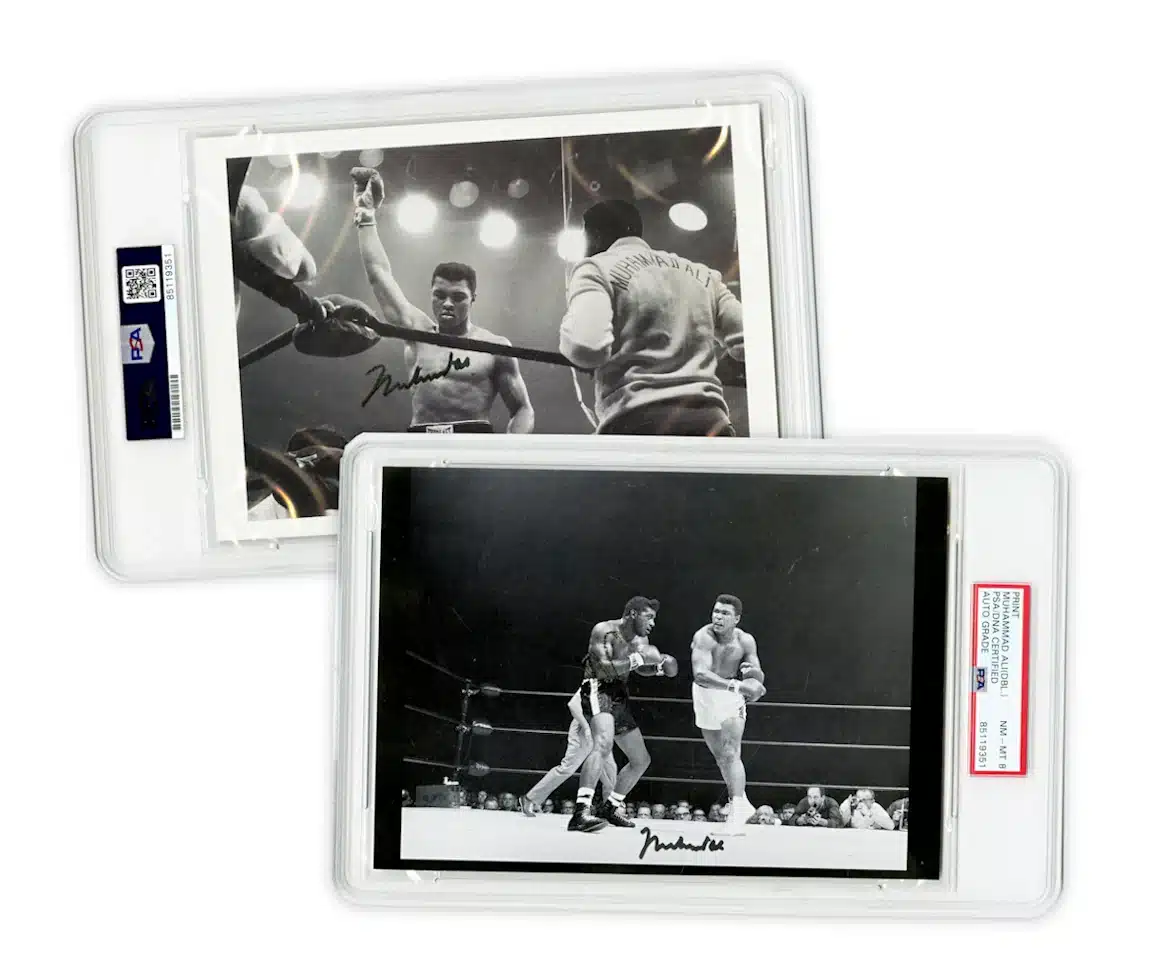 2 Signed Photos of Ali Vs. Patterson 1965 PSA 8