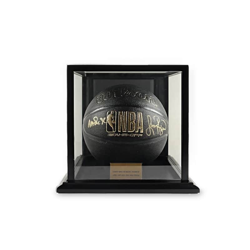 The Larry Bird Magic Johnson dual signed basketball is a true gem for any basketball fan or serious collector. This rare dual-signed NBA basketball captures the mutual respect between two of the greatest players in NBA history.