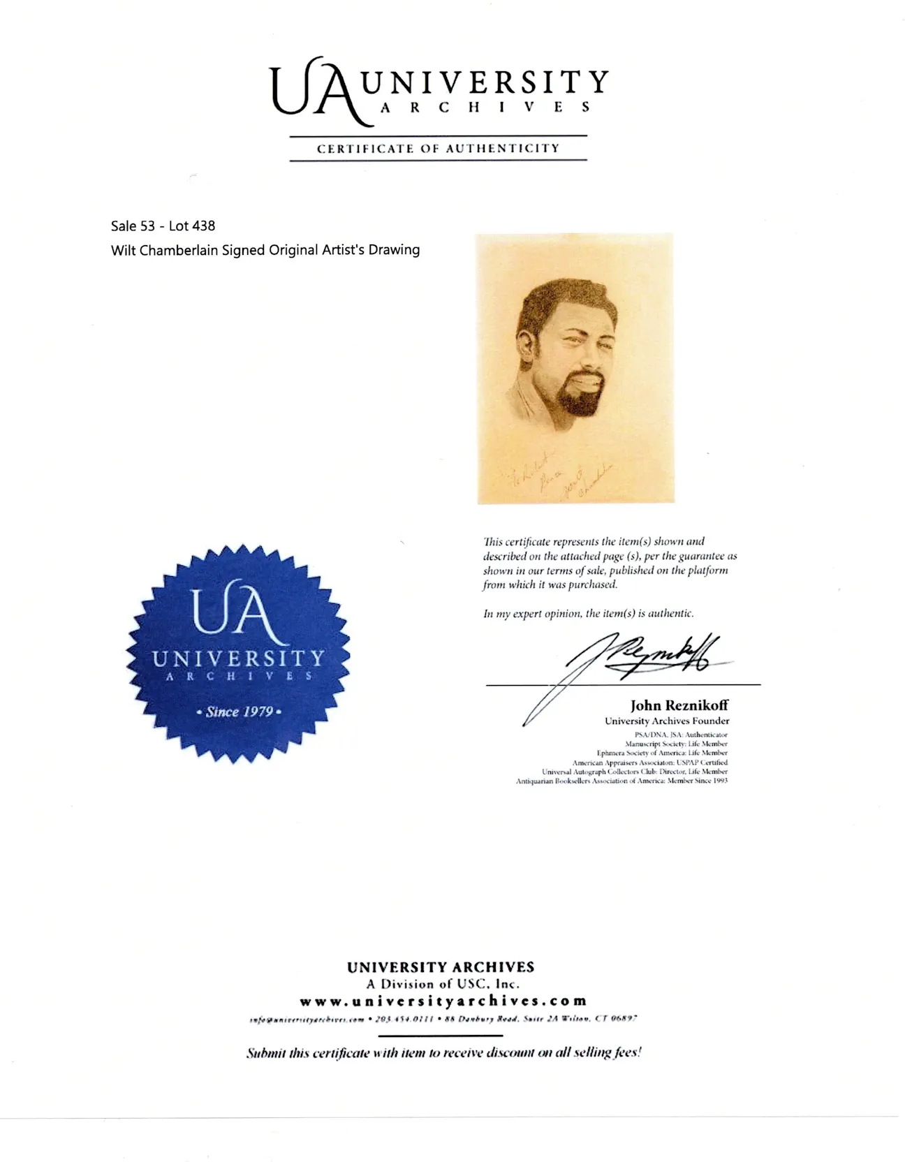 Whether you are a Lakers devotee, a 76ers fan, or a historian of the game, this signed drawing is a definitive statement piece. Own a literal “Peace” of Wilt’s legacy today at AntiqueArmory.com—where history is preserved.